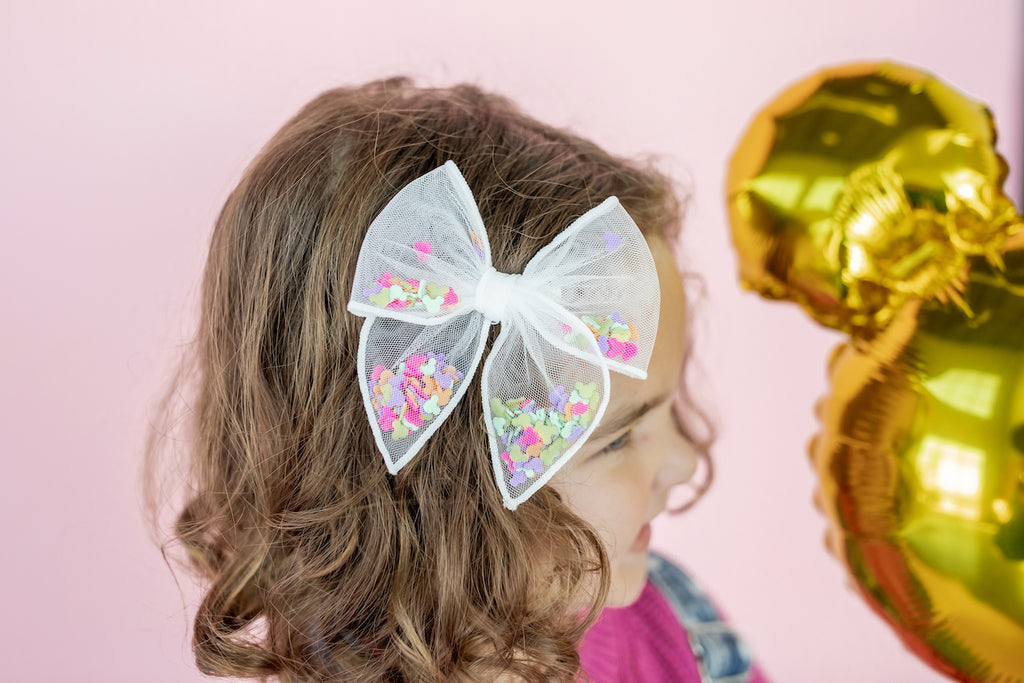Available on an alligator clip - Best option for your older babes. The silver metal clip can easily be rotated to be worn on either the right or left side.