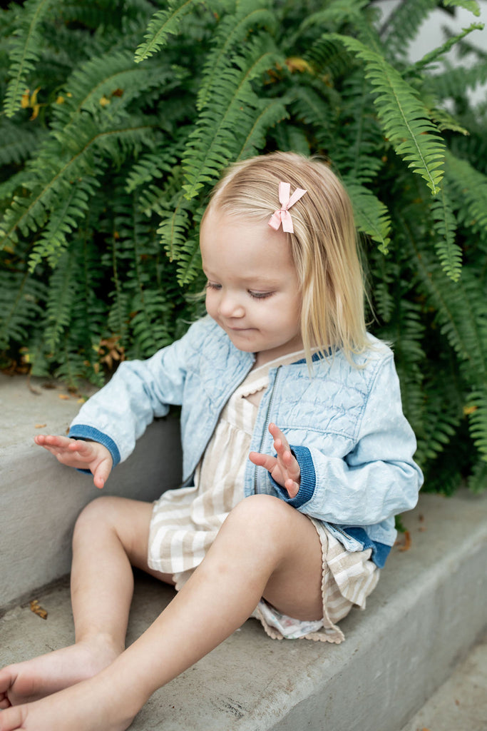 1) Alligator clip - Best option for your older babes. The clip can easily be rotated to be worn on either the right or left side.We look forward to seeing your sweet babe wearing #modernpiggy.