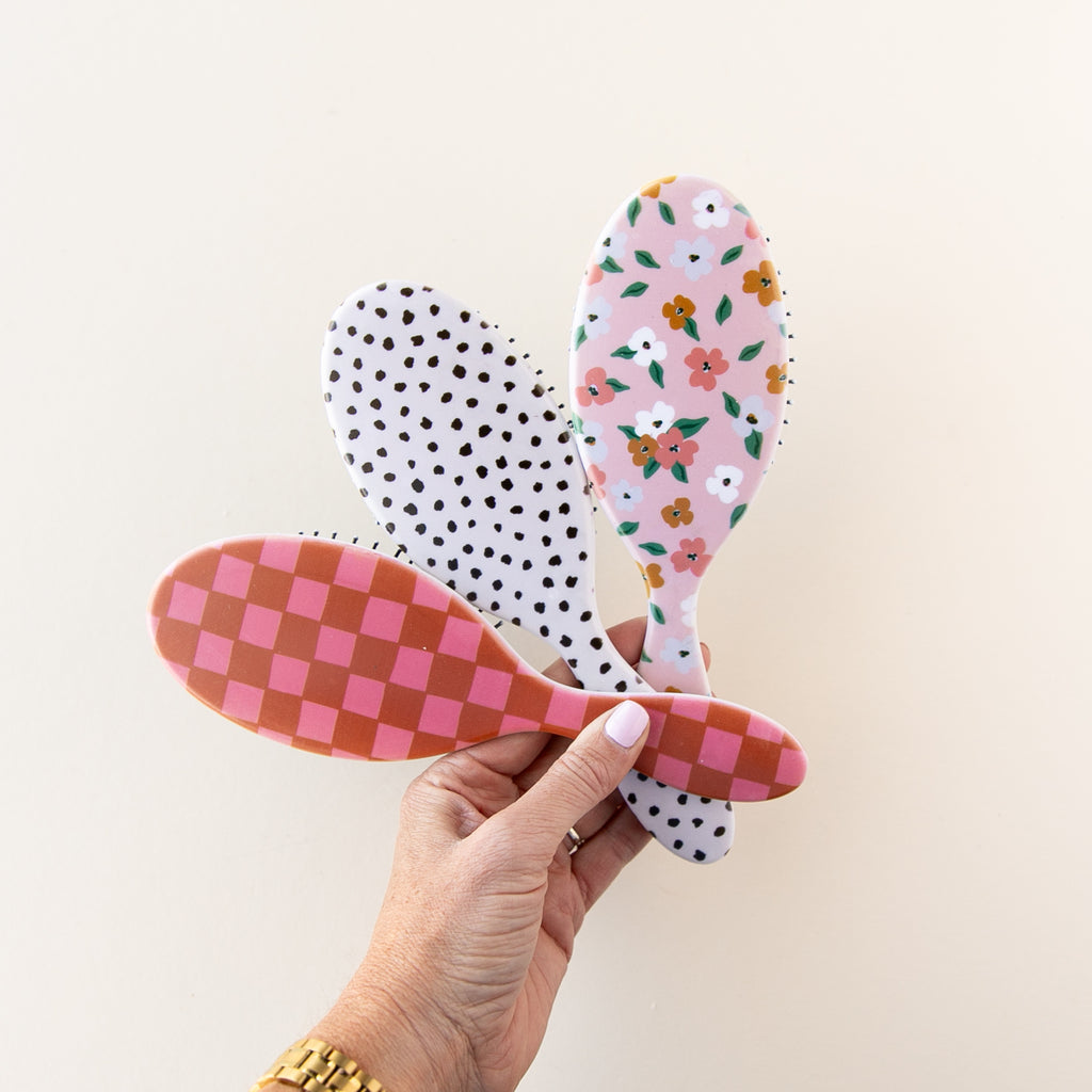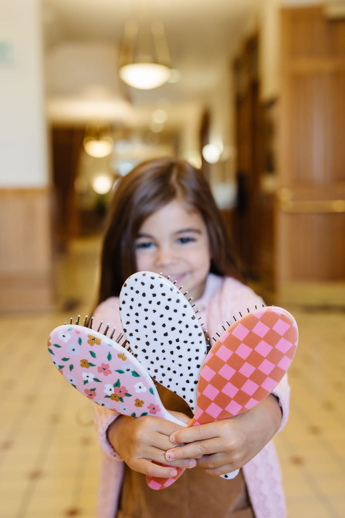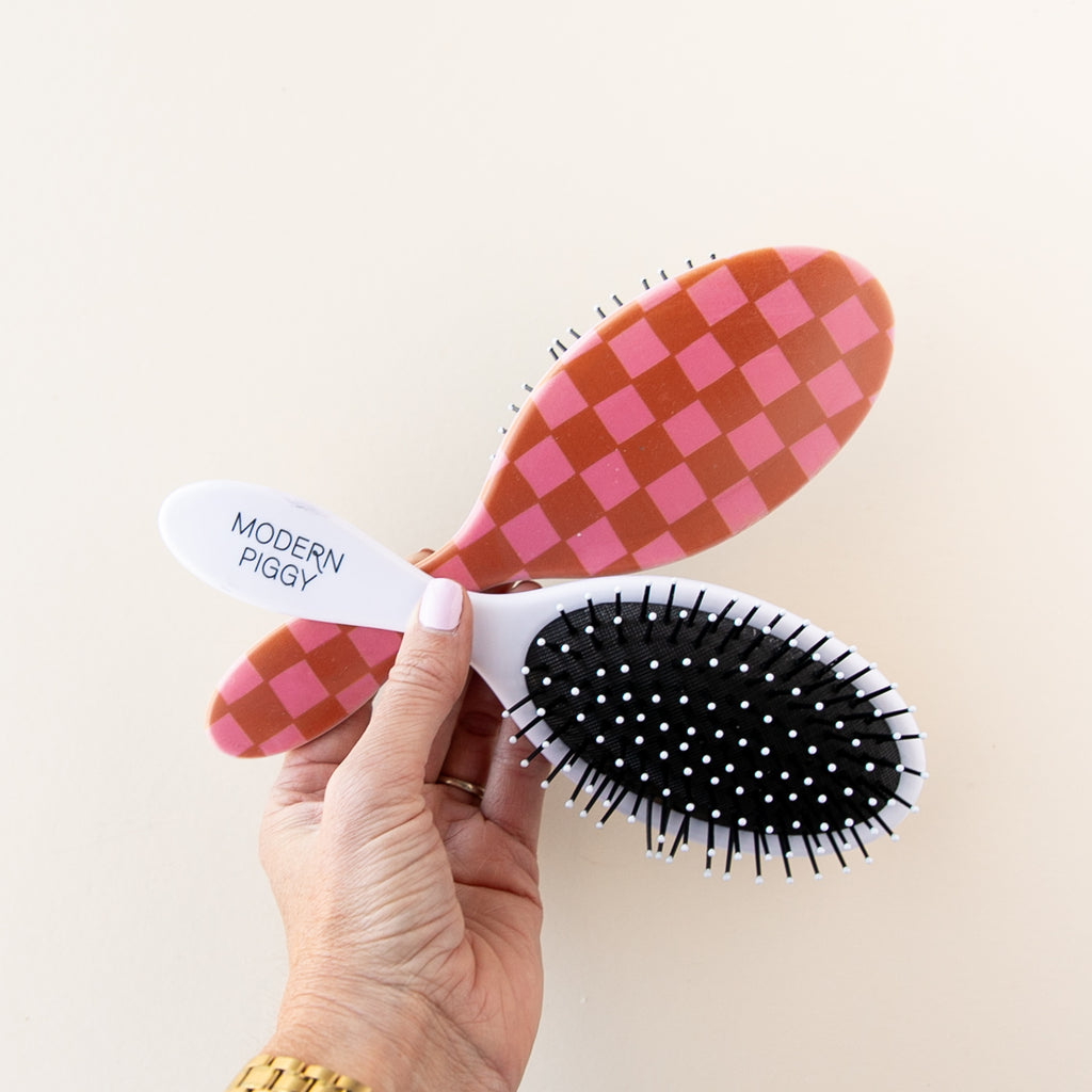 Our detangling brushes will be a huge hit with girls of all ages. Made with sturdy bristles but glides through tangles with ease. And each brush includes our Modern Piggy logo. Perfect for all hair types.