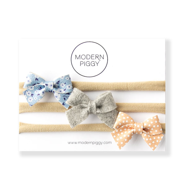 1) Look through all of our baby bows here and decide which three you would like. **Note: This create-your-own set is only for baby bows in this collection here. Not valid on clearance items.