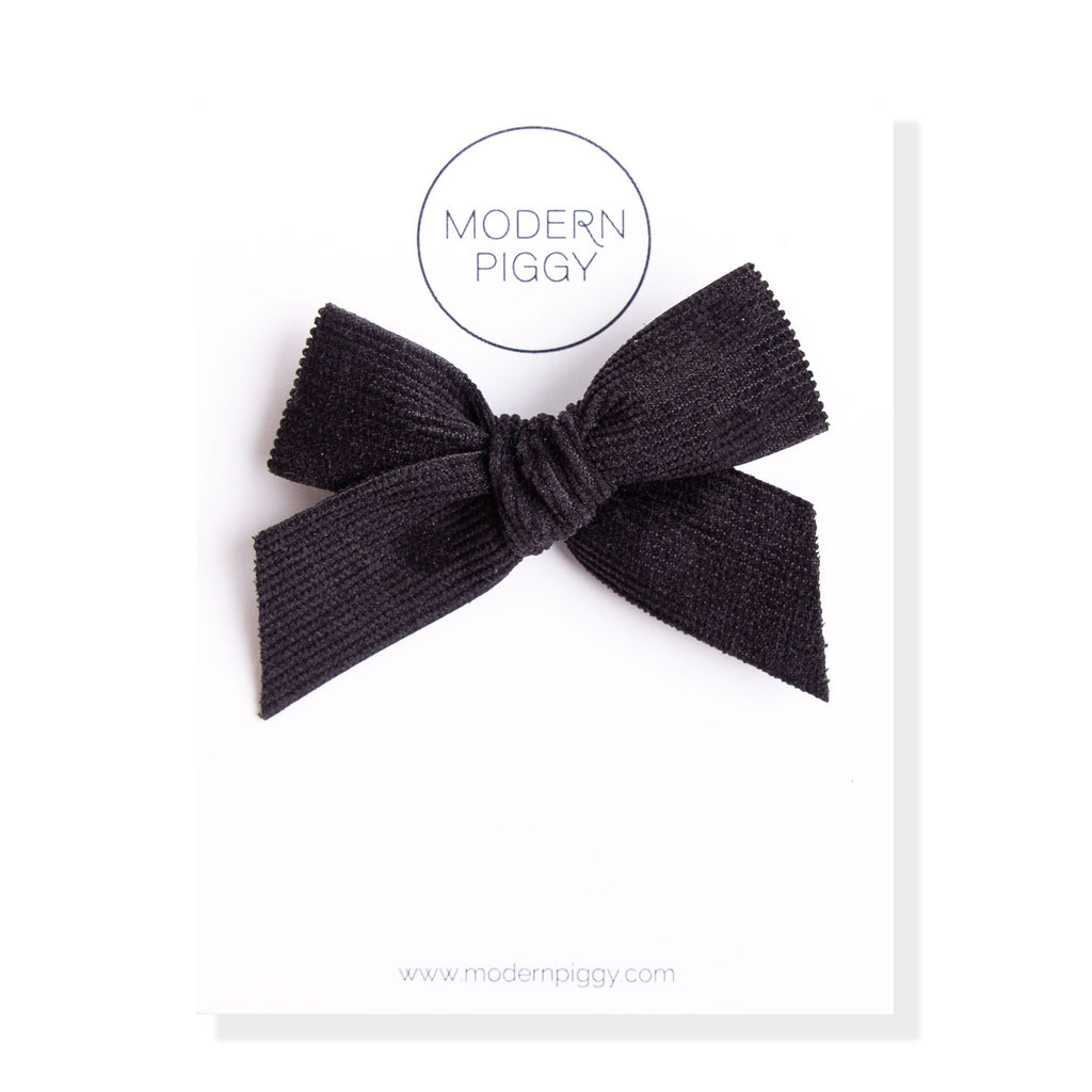 A sweet and simple hand-tied bow made out of a high-quality, corduroy ribbon.