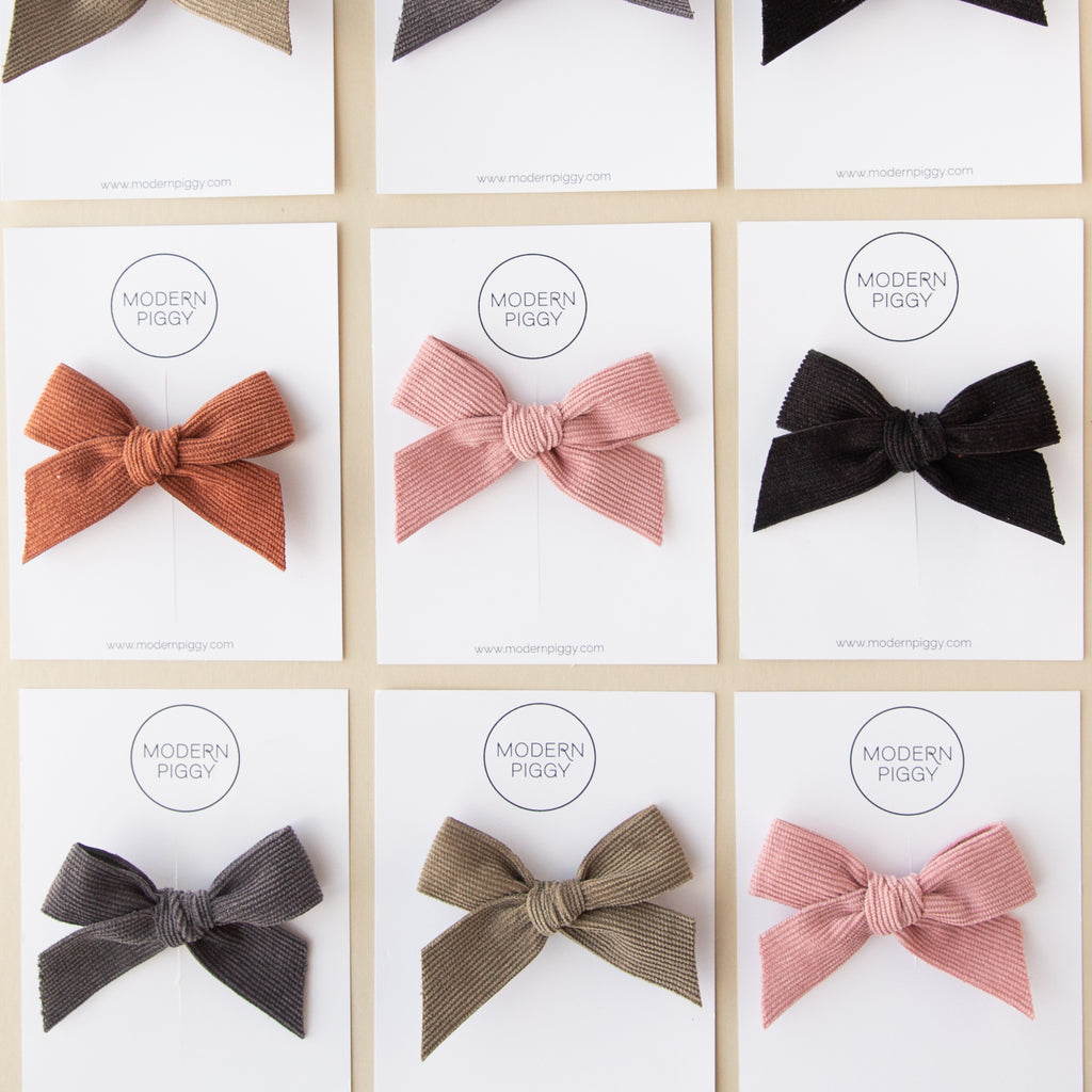 A sweet and simple hand-tied bow made out of a high-quality, corduroy ribbon.