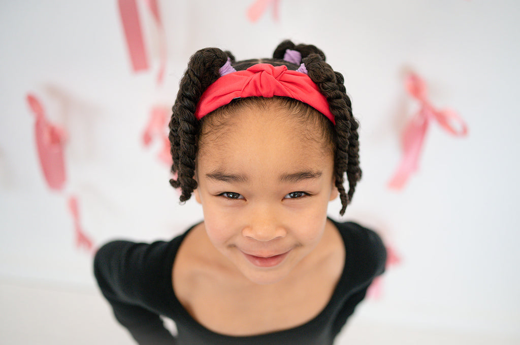 Our knotted headbands fit young girls to women. Suggested age is 5 years+.