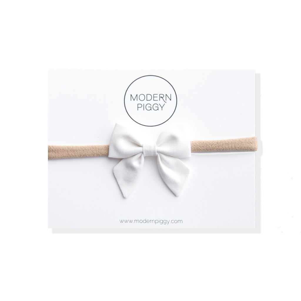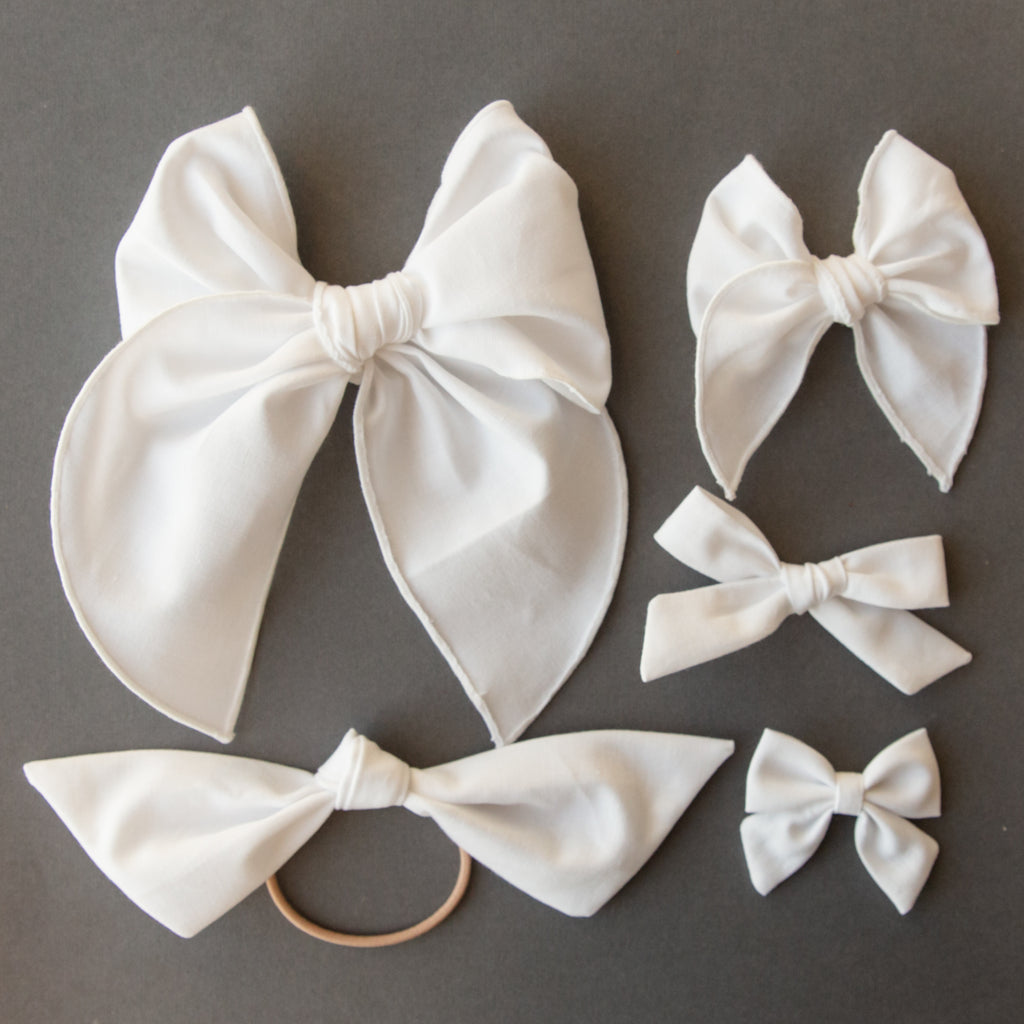 A sweet and simple sailor-type bow made out of a high-quality, cotton fabric.
