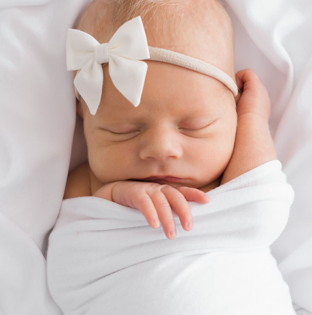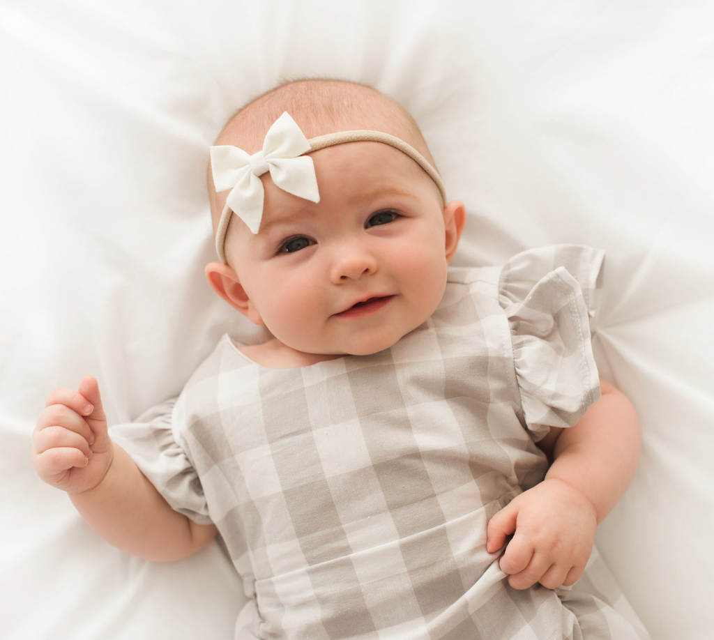 2) Nylon headband - This option for your littlest babes and is made out of a soft and stretchy, nude nylon that is gentle on your baby's head. It is one-size-fits-all; no more buying new headbands as they grow.