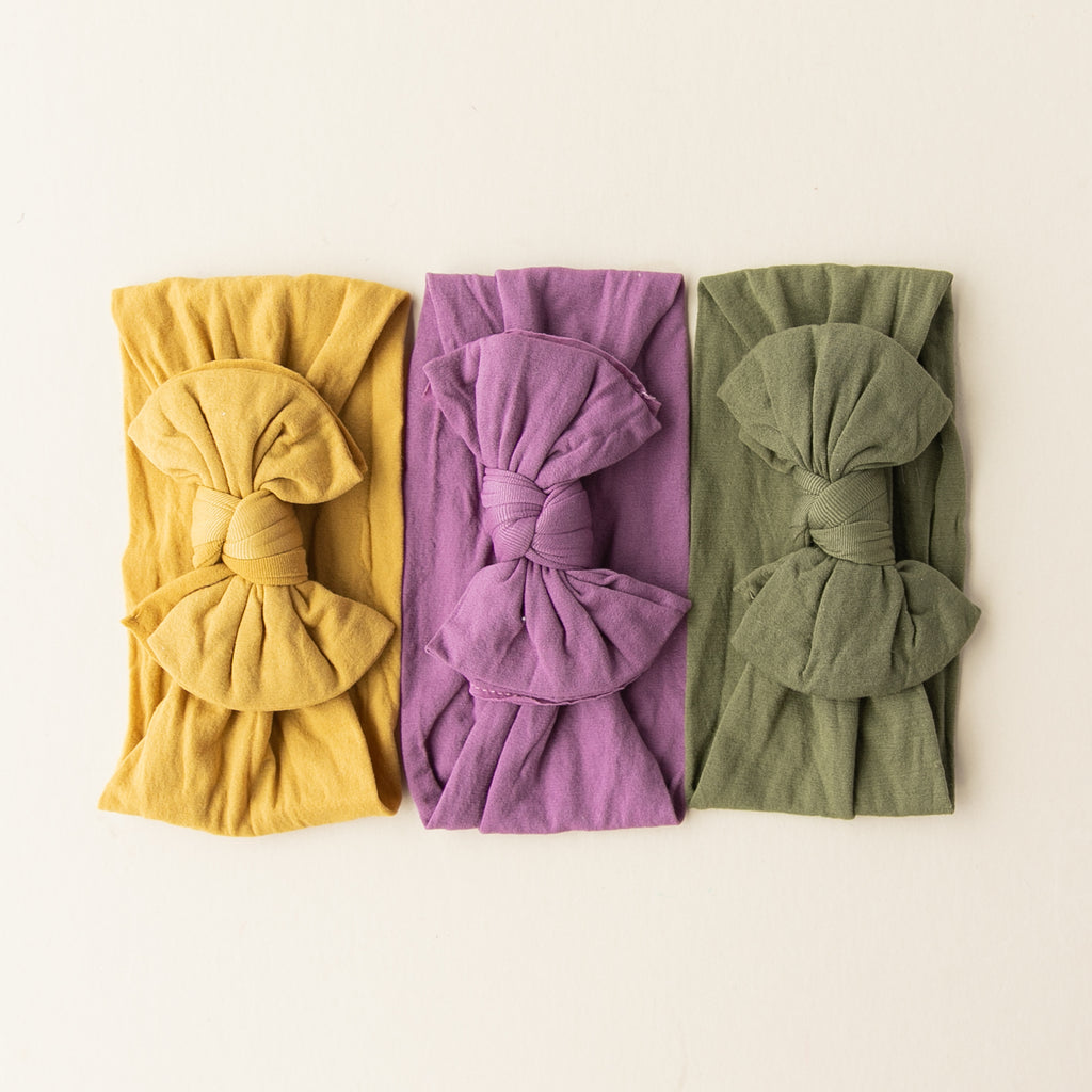 Our baby bands are a wrap style bow made out of high quality nylon.