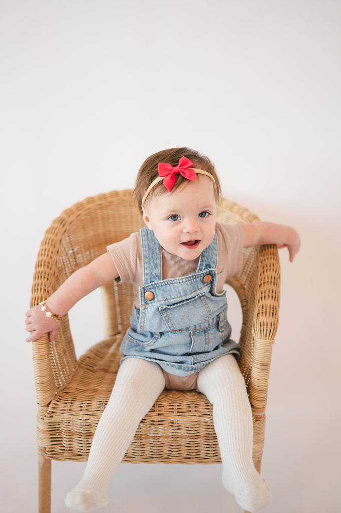 2) Nylon headband - This option for your littlest babes and is made out of a soft and stretchy, nude nylon that is gentle on your baby's head. It is one-size-fits-all; no more buying new headbands as they grow.