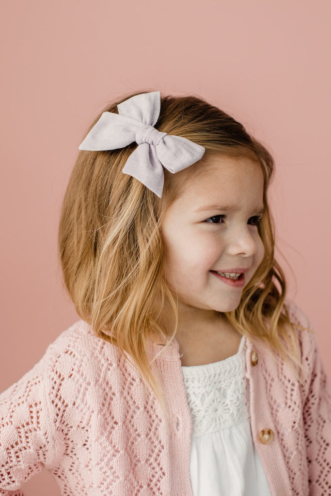 1) Alligator clip - Best option for your older babes. The silver metal clip can easily be rotated to be worn on either the right or left side.