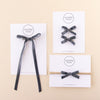 A sweet and simple set of hand-tied bows made out of a high-quality, velvet ribbon.