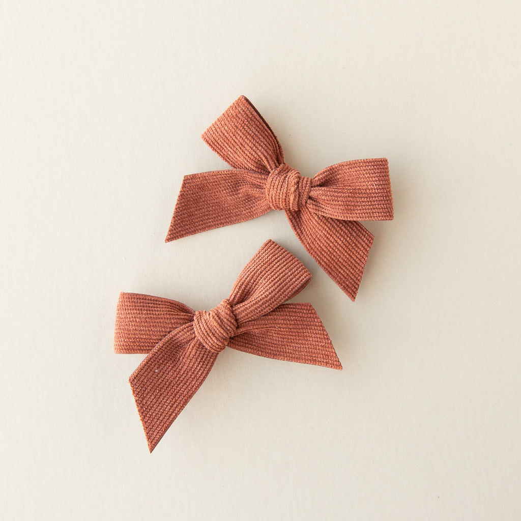 A sweet and simple hand-tied bow made out of a high-quality, corduroy ribbon.