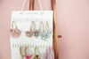 Dimensions: 13 1/2" wide x 29 1/2" long with 60 gold hooks. Each hook can hold multiple headbands!