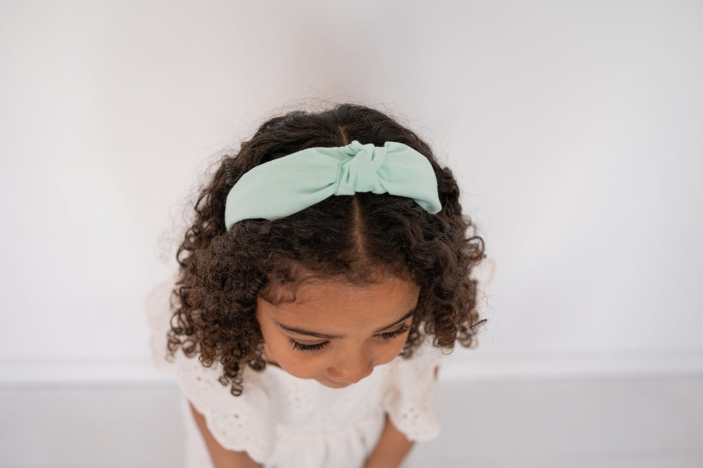 Our knotted headbands fit young girls to women. Suggested age is 5 years+.